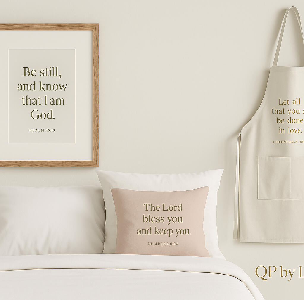 About QP by Lani™At QP by Lani™, we believe beauty and truth belong in the everyday. We create home goods and digital designs that whisper grace, comfort the soul, and reflect faith in elegant, meaningful ways.Whether you’re wrapping a baby in scriptural softness or adorning your walls with verses that speak life, we design each piece with intention, peace, and purpose.---Our Offerings🛏️ Beddings with verses — for peaceful sleep